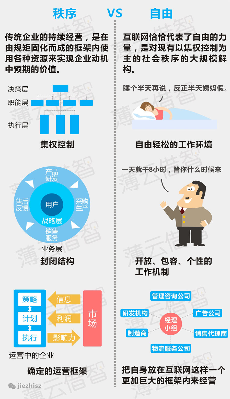 传统企业的“互联网+”转型之路的背后最根本的矛盾冲突是代表秩序和自由这两股力量的博弈。